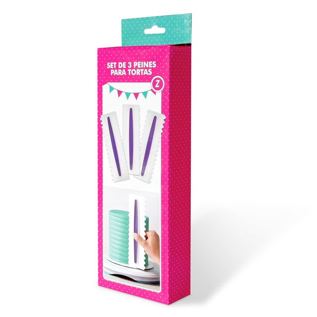 Set de 3 peines plásticos con 6 diferentes diseños.